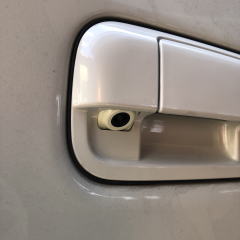 バックカメラは純正風にリアゲートアウターハンドルに取付しています。